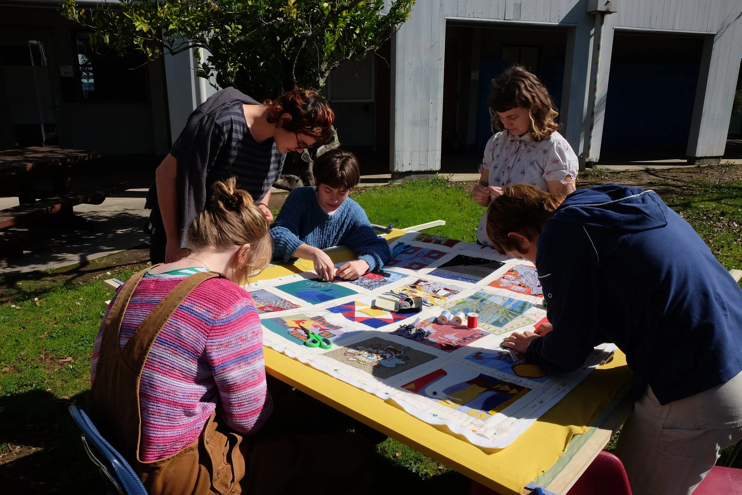 This climate grief focused quilting bee is a social practice arts project, with the goal of bringing students and community members across disciplines on campus together through quilting. This project intends to create space for our grieving while simultaneously providing community support as we envision our evolution together.
