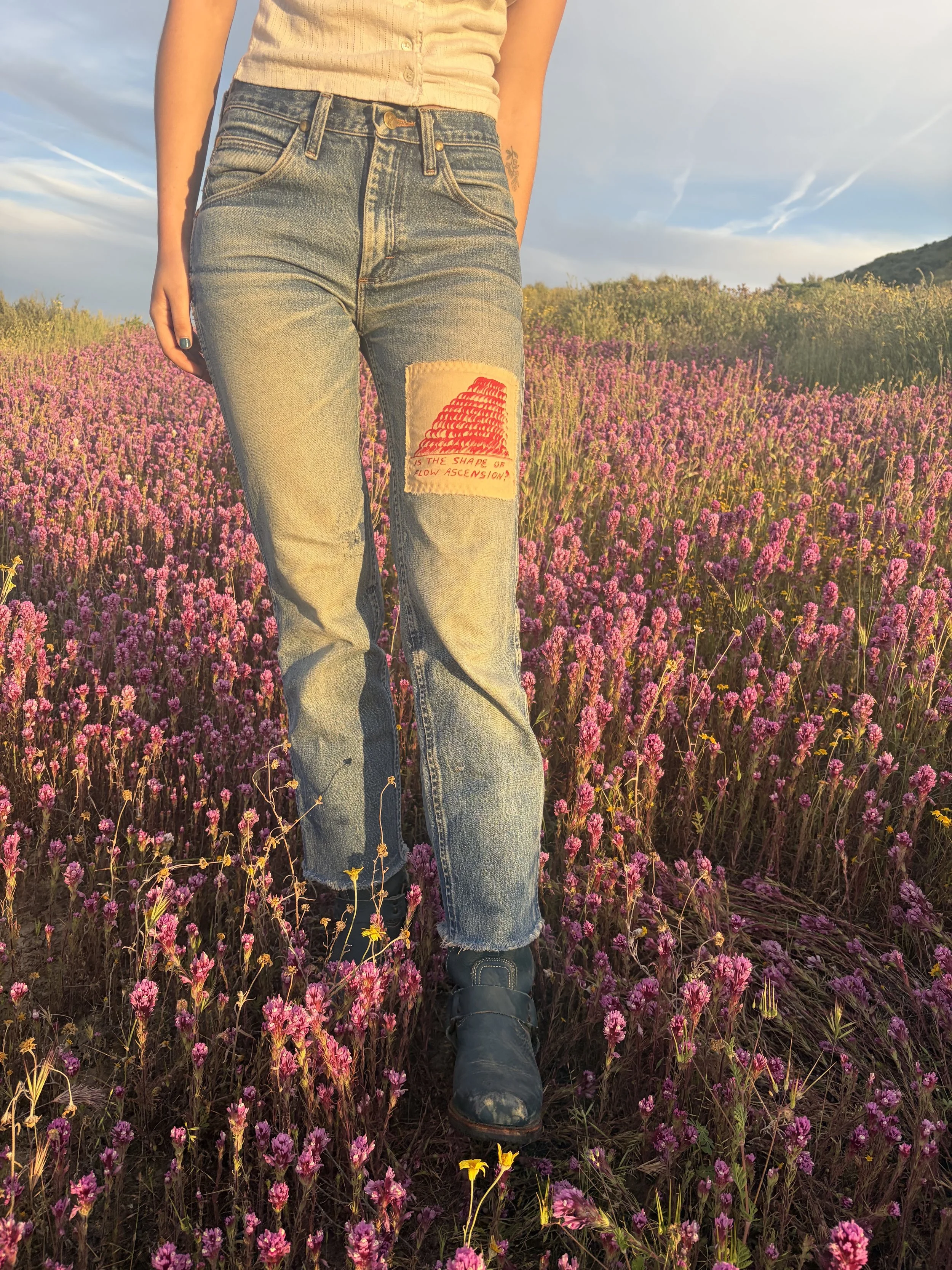 Shop hand-painted one-of-one patches inspired by folk art, wearable art, and “cheap” art. Each patch is painted with heat-set textile paint, ready to be sewn onto any garment in need of repair or a refresh